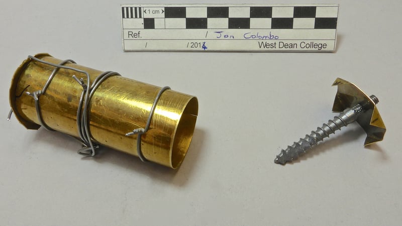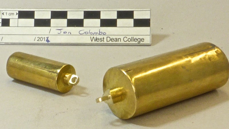 A quick look at some mid eighteenth century weights showed that the brass used is very thin indeed, typically less than half a millimetre. The West Dean sample ranged from 0.2 to 0.45mm; more of a veneer than a casing. The sheet is wrapped into a cylinder with a domed base, also made from the sheet. The joints are butt-joints that show as fine lines, but appear not to be soldered. The assumption is that this thinness was due to brass being expensive, and that they were brazed to give a uniform surface. I therefore set out to work out how this could be replicated using modern 0.3 mm brass (CZ108) sheet. I tried a number of torches, varying from tiny super-hot, through big plumbers burners, to sophisticated oxy-propane torches lent by our metalwork conservation colleagues. I tried different techniques with brazing wire; making "stitches" with it, laying in on top of the joint, laying it on the joint inside the tube, and hammering it flat. I tried different approaches to heating the tube; from above, from inside. I used a variety of firebrick edifices. A couple of these produced a few centimetres of "good" join, but generally I ended up with a growing pile of burnt, buckled, sad, relics.