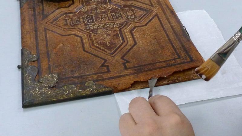 The mid-19th century family Bible that I am currently working on with William, one of my fellow students, has many interesting challenges for conservation.