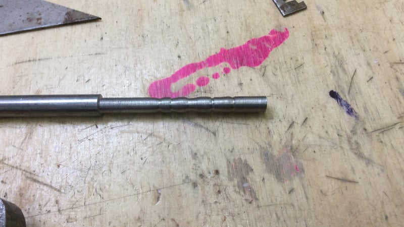 This gave me a chance to make repairs to the bolt and give it a good clean. Having done this, I then replaced the bolt, and one of the levers, and made a key that worked with one, by filling out the relevant section on the blank bit. I then added the next lever, and did the same, and so forth. Having made my proto-key, I could then research and think about designs for the new key. After many hours of library and internet research, all the evidence suggested my box's key would look like…..a key. It seems like with strong boxes in the 1800s of this style, there wasn't a great deal of decoration being applied, but I did find several examples of the stem of the key being decoratively turned on a lathe, and so jumped on this opportunity to give my key a bit of life. The turned-down stem looks as follows: