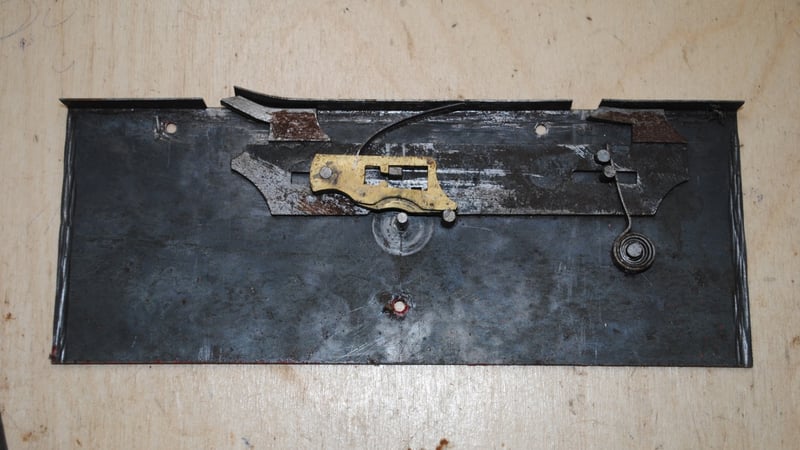 Thanks to the box being already open, I didn't have to worry about picking the lock, and was able to simply remove the whole lock plate, giving me excellent access to its inner workings, which looked like this:
