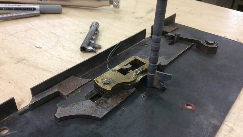 It may not be pretty, but it does the job! And more importantly, gave me a better understanding of the lock, and allowed for a template of the bit to be made, so when I came to making the real thing, the chances of going wrong were limited. But how did I come about making such a wonderful proto-key? Initially I removed the levers (the parts of the lock that move up and down to allow the bolt to slide) from the rest of the mechanism, as can be seen below.