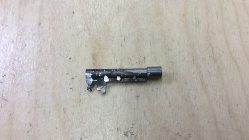 Although this initially appeared complicated and confusing, after around half an hour of conservation-level physical interaction (tinkering) it became clear that the only parts actually damaged were the bolts that were bent out of place at the top, and that the real task would be making the key. My first step for this was to make a test key.