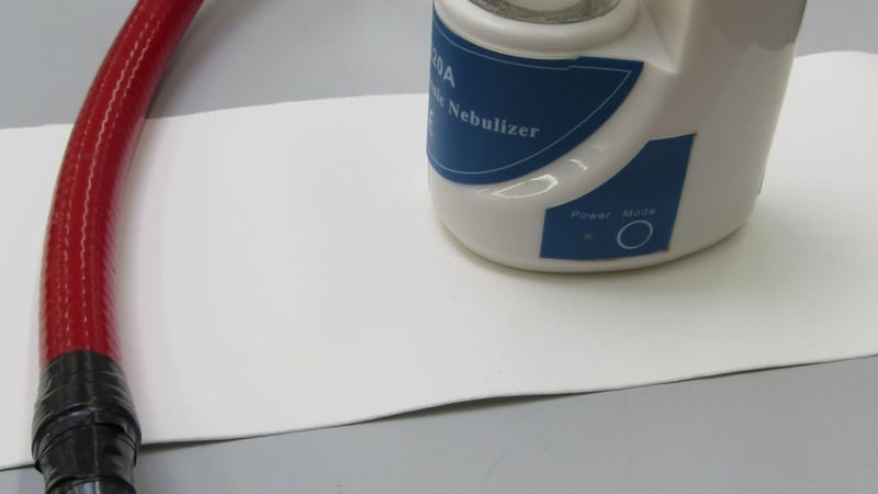 The best solution then was to improvise a bit. We found a cheap, home nebuliser online, intended for medicinal use, and adapted it, with some extra tubing, a little plastic pipette for the nozzle, and a lot of electrical tape. Not perhaps the most elegant looking of things, but certainly workable!