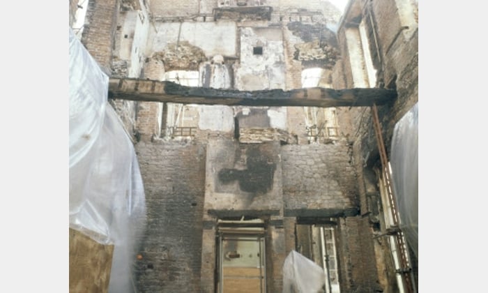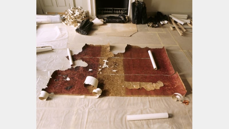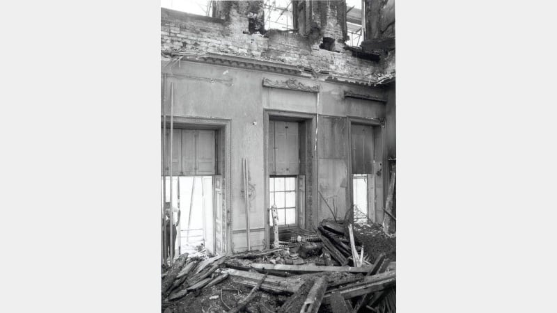 After the fire, the house was four feet deep in wet ash and rubble. (It was open to the sky from every ground floor room.) It was gridded in the manner of an archaeological site to record where each cubic metre of ash came from which was then stored in 4000 plastic dustbins, later reused at Windsor Castle, to be put through a giant riddling machine developed by the Ministry of Defence to sift out bomb fragments. This extracted an extraordinary amount of mainly architectural detail; window and door brassmongery, precious fragments of gilded and gessoed architectural woodwork, even fragments of damask wallpapers. The lesson; never throw anything away. Most of this material eventually went back into the house, far more precious than a replacement. Furthermore, the high cost of making copies meant that conservation was often cheaper than replacement, which meant there was no argument with the insurers; philosophical and financial considerations aligned.