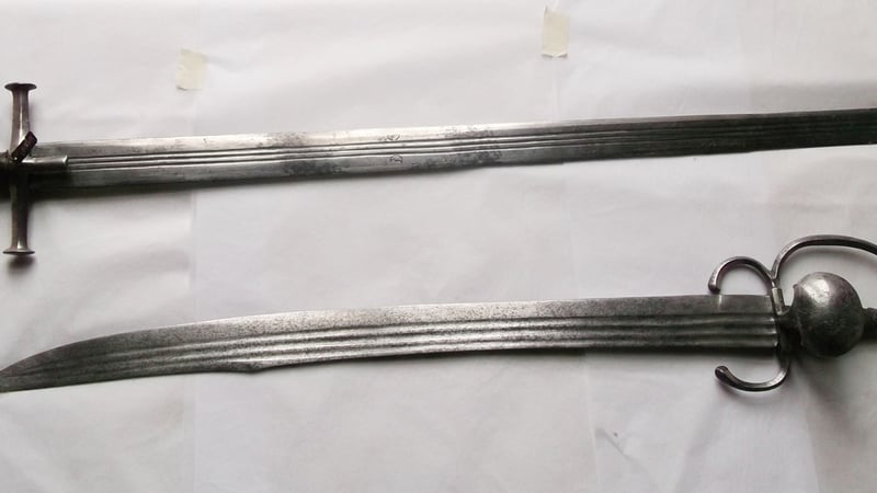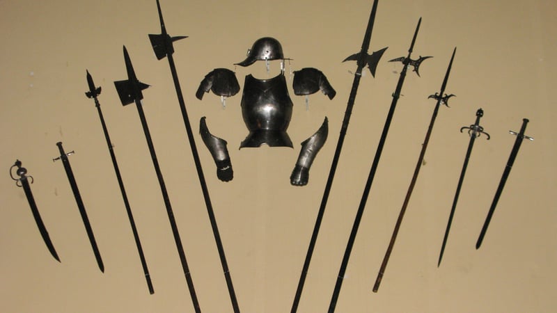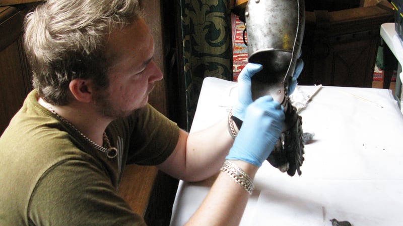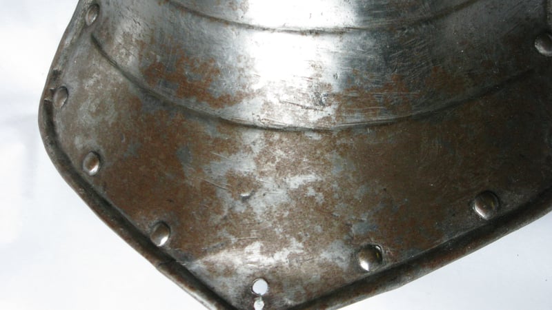 Initially the first four weapons seemed to be in good condition. However, the first suit of two sets of armour had iron corrosion damage on the surface, which was caused by a leak in a bath in one of the above rooms three years ago.