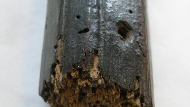 On the second display there were signs of woodworm. It is unknown whether this is old activity or recent; this will now be monitored over the next year to see if there is more development or signs of activity. It is relatively rare to have woodworm activity in such dry conditions, as woodworm tends to thrive in moist and warm temperatures.