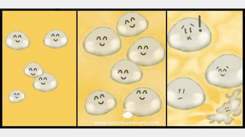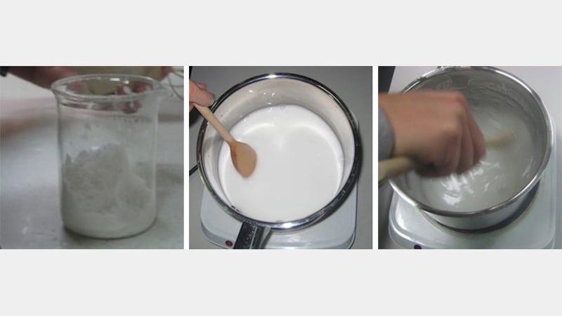 At this stage the paste has become thick due to the granules swelling and needs to cool. The cooling of the paste is just as important as the heating. The rate at which the paste is cooled will also affect the outcome of the paste. The paste should be stirred while cooling, but if the paste needs to be thick there should be less stirring so the granules are not broken down any further. If the granules are over-mixed, the thickness and stickiness of the paste will decrease.