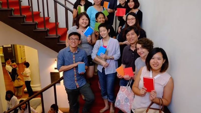 Thistle Bindery in Singapore and teaches some bookbinding