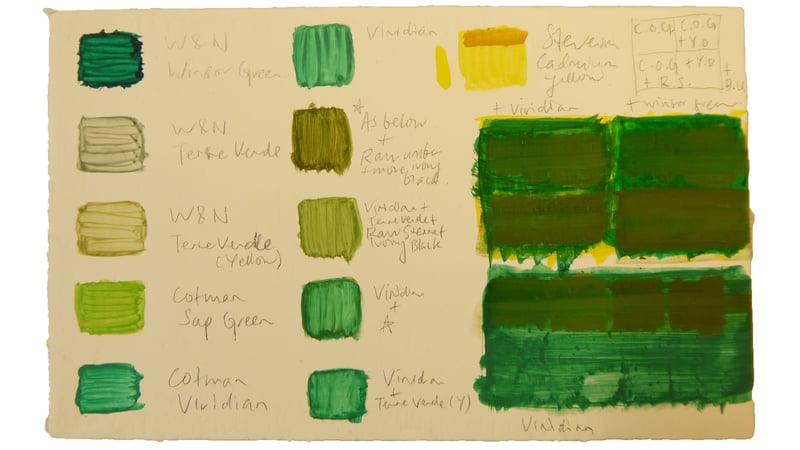 Colour tests performed on a gessoed wood panel indicated strongly that a yellow base was of the essence in order to recreate the effect lent by the gold leaf.