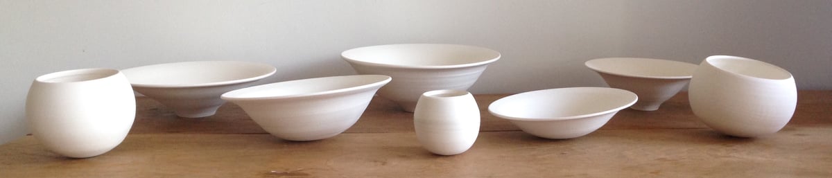 In early 2013 I took my first course at West Dean College in 'Throwing and Turning for Beginners' with Ali Sandeman. It was enough to spark my interest in pottery and I also met a then current Foundation Diploma in Art and Design (FDAD) student that initiated the possibility of taking things further. Shortly after I bought my first 2nd hand potters wheel (very unreliable!) and began practising at home in the kitchen.