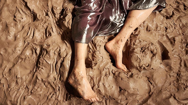 At RITE's core is a drive to expand the relationship between movement and material, a concern that has informed the artist's practice for over a decade. In the 13'15" video RITE, dancer Rosemary Lee performs a piece designed by Peake on a floor of wet clay. If the music was fundamental to the choreographing process, in the video, its only presence is in Lee's mind. The performer's fiercely expressive body is thus given centre stage, its physical intensity echoing Stravinsky's polyrhythmic attack.