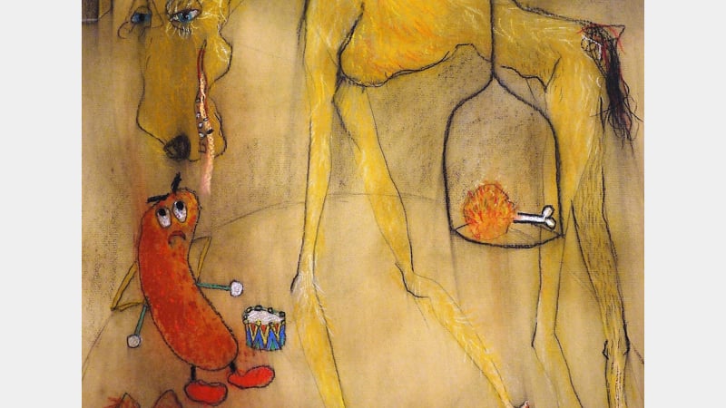 Freya Pocklington - Sausage Drummer (2011) Conte Pencil and Ink on Fabriano Paper, 80 x 60 cm[/caption]