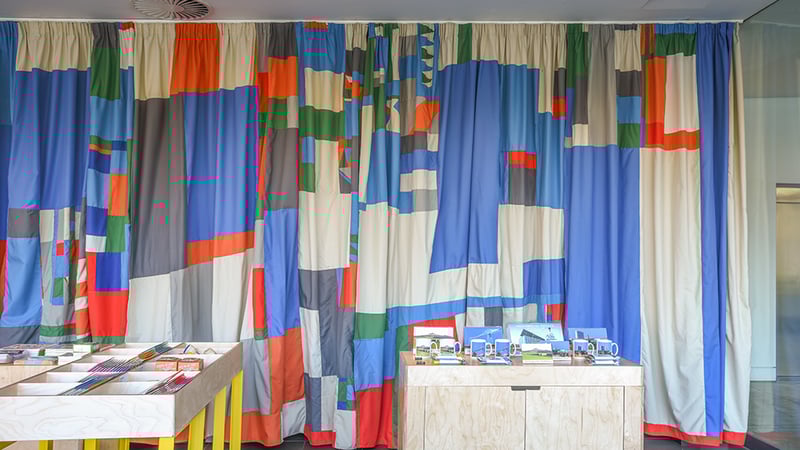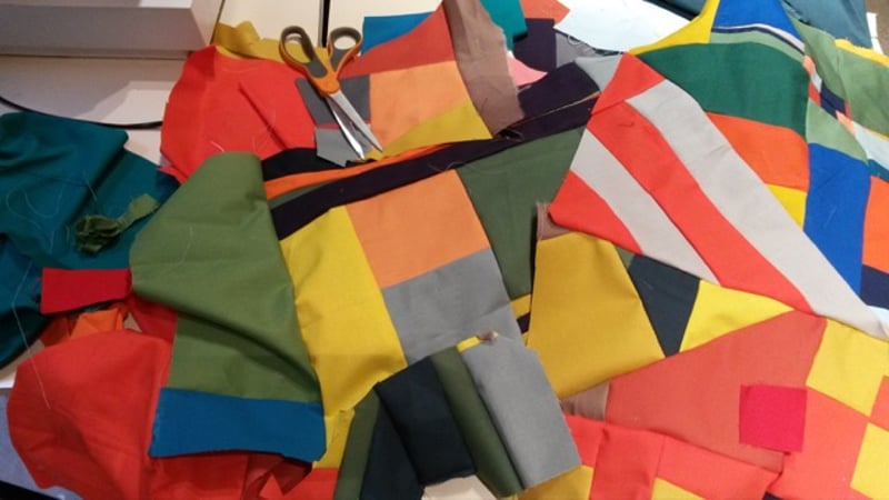 Katie's practice interweaves personal, social and craft-based histories, often drawing from marginalised and overlooked traditions of making and working collectively. She creates installations of embroidered and woven textiles, ceramic tableware, furniture and videos, drawing on the bright colours, bold shapes and abstract forms of twentieth-century modern design. Katie has a longstanding interest in the textile works of female modernists and, drawing on the multiple roles these women undertook as artists, designers, writers and teachers, her work similarly moves fluidly between gallery, learning and domestic spaces. An interest in shared social space evolves both through her research and within the ways in which she goes about producing work. Her videos document domestic, communal and educational interiors, and she is intrigued by exploring working practices which take on different models of acquiring and sharing knowledge and skills. Spanning references to high design, DIY crafts, self-build projects, radical pedagogies, workshops and rehearsals, Katie is interested in exploring how different hands and voices can come together to respond to issues pertinent to our daily lives, especially around questions of housing, labour, gender, learning and public and private space.