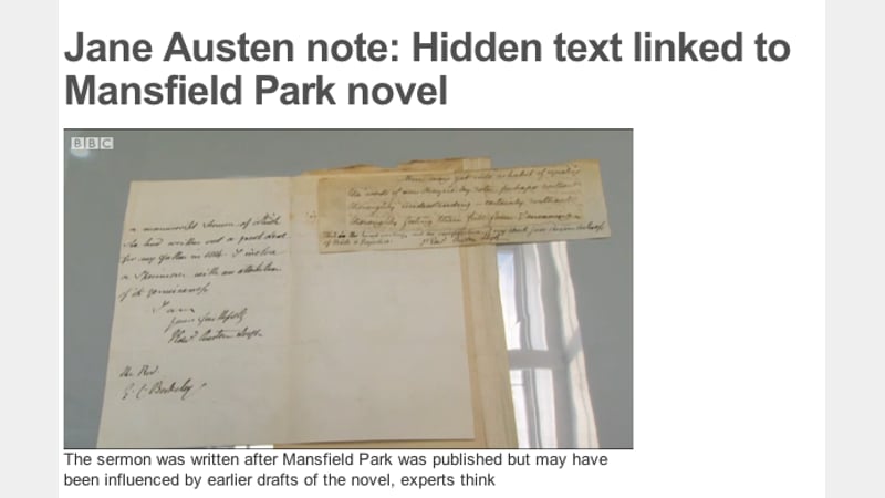 Keira was on the BBC a few times today explaining what she's been doing to the Jane Austen manuscript fragment! See the video here. More to follow soon about treating the iron gall ink.
