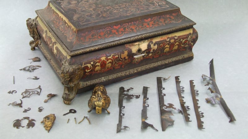 This object is something that I was given to assess for treatment towards the end of the spring term. I will be restoring it over the summer. I have put a little bit about the history and design of the object below: This Boulle object is almost identical to another object seen in Antique Boxes Tea Caddies, & Society; it has been confirmed that both of these objects originate from the same period and location and utilise the same techniques. Due to these factors I have been able to allude to published excerpts with a high degree of retained verisimilitude in creating a context for this object's commission and completion by a master craftsman.