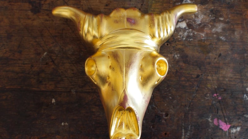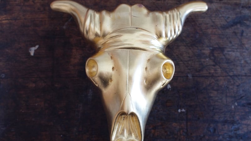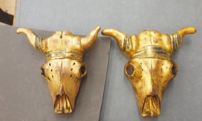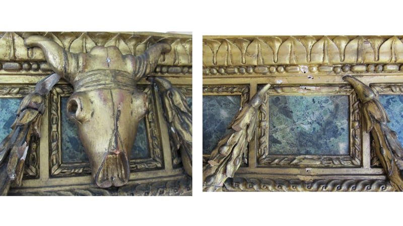 Finally the gilding was toned to match the original using watercolours, rottenstone and earth pigments. The tone was matched to one of the smaller detached bucranium from the table (left).