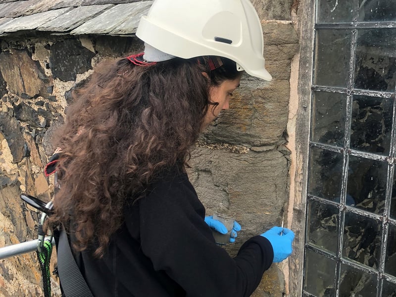 Through completing a graduate diploma I continued to the MA studies in the conservation of ceramics and related materials at the renowned West Dean College. My thesis investigated nanocellulose as a potential alternative to traditional fill materials for semi-precious stone, and I have been fortunate enough to expand on my interest in materials research in my current position. Part of my role as a stone conservator for Historic Environment Scotland is conducting investigations into alternatives to Paraloid B-72 in the mortar repairs on stone buildings, driven by the need for conservation to work towards a sustainable future in the heritage sector.