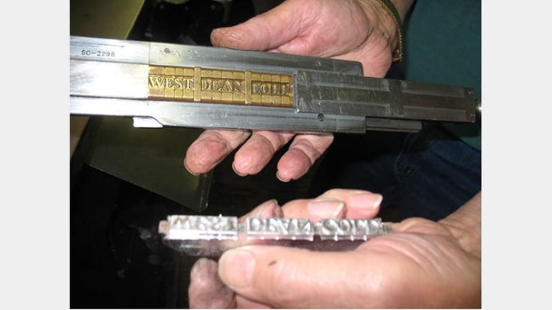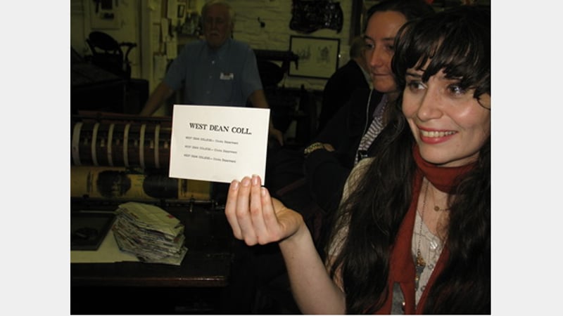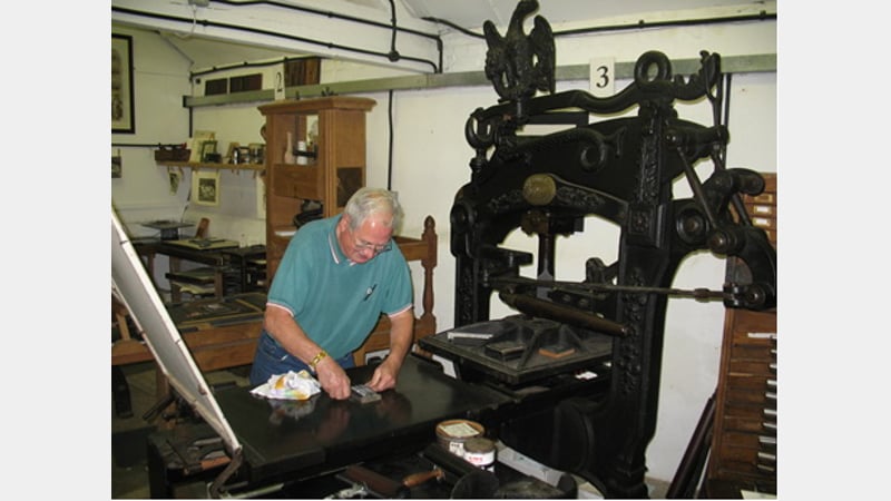 At our last exhibit we had an in depth demonstration by Tony and Jon, formerly of The Sun and Daily Telegraph when in Fleet Street, of a Type 78 Linotype typecaster. Jon set two sizes of typeface, one using the typecaster, that took seconds, and the other by hand - a bit longer. Tony and Jon then locked up the type and printed bookmarks for all using two hand presses; one being similar to Caxton's made out of wood.