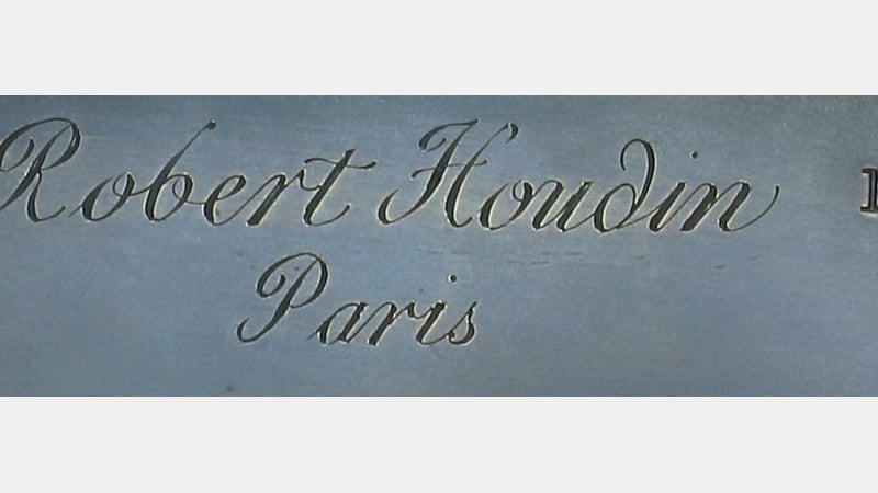 Jean Eugene Robert-Houdin, born into a family of watchmakers in Blois, France, was primarily a conjurer and practical joker and this clock is no exception as it is Robert-Houdin's "Fourth Series" of Mystery Clocks representing his continued improvement of mysterious timepieces that was in part driven by his rivals. The clock would have been pride of place, lit either by natural or candle light, whereupon its onlookers would have wondered at the science of telling the time without the hands being attached to conventional clockwork.
