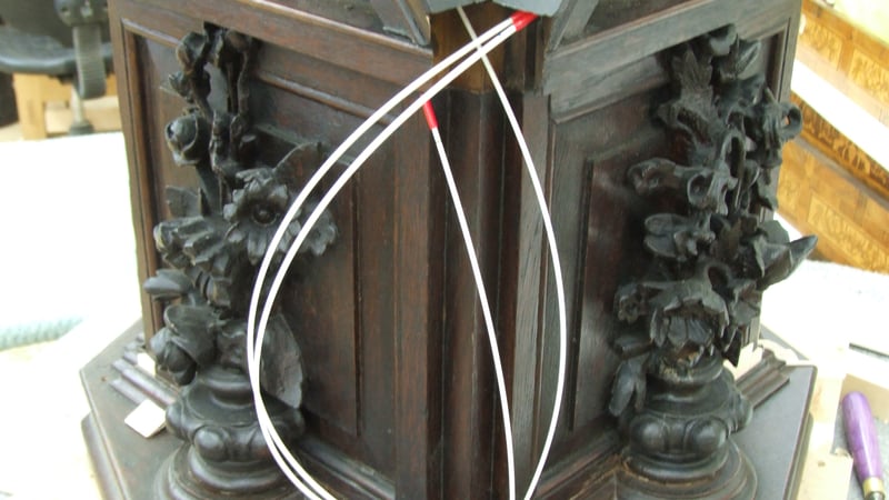 Because the sides were so badly cupped it was impossible to close most of the gaps not putting more stress into construction. To fill the gaps with slivers, balsa wood was chosen because of its low compression modulus. It was especially important because of a much different conditions in the workshop and the church which has a fluctuating environment. All the slivers were slightly lower than the surrounding parts so reduce their visual impact.