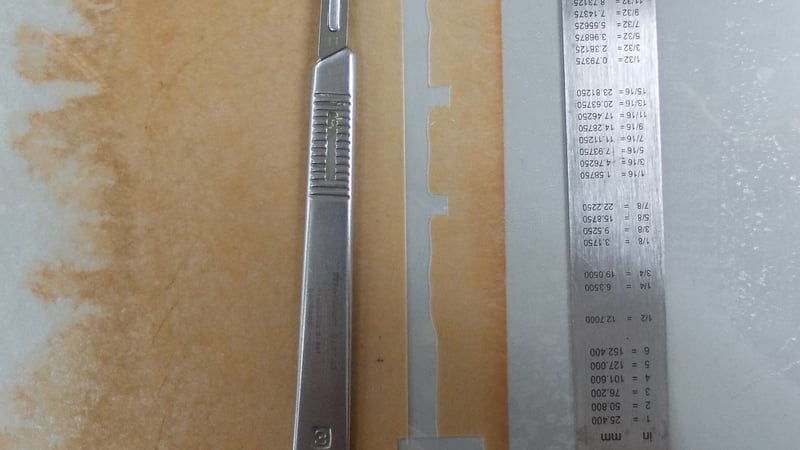After drying, this coated paper is cut to the height of the boards. In order to get the right shape, tracing paper is used to draw the outlines of the joints. The Japanese paper was then cut with a scalpel.