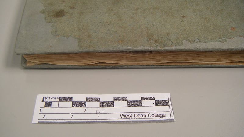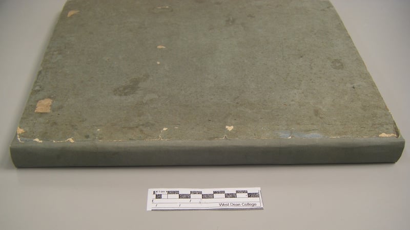 With the book functional again, I turned my attention to the outside of the book. The boards themselves were thin for the size of the book, and the corners had become battered and lost material. Furthermore, the paper cover was ragged, especially on the back cover, and was coming away from the boards.
