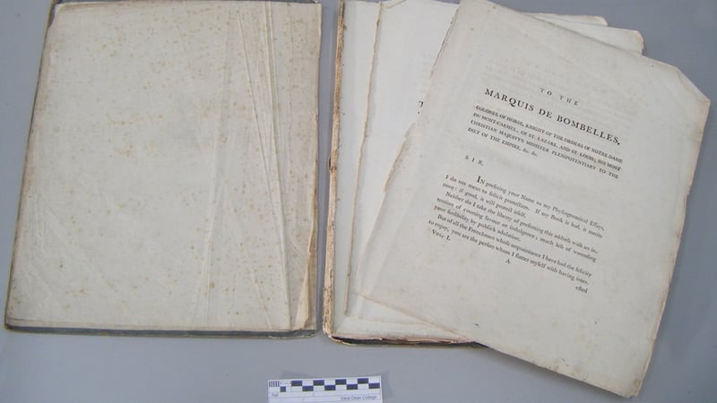 When I first received this book it was in a sorry state. The original paper binding, sometimes used as a cheap alternative to more durable binding styles, was most likely intended to be a short-term covering until the owner could have it properly bound. For whatever reason, this never happened so, just over 200 years later, this "temporary" binding had pretty much pulled itself to pieces.