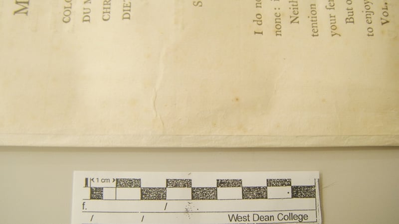 Similarly, the plates needed to be guarded together in order to sew them along with the rest of the book. Unlike the first half of the book, I decided that these should be arranged into sections containing two folded sheets (or four joined plates), in order to reduce the swell caused by sewing. To make sure this did not significantly affect the functioning of the book, I made a sewing model first, which confirmed that my proposed re-sewing would work correctly.