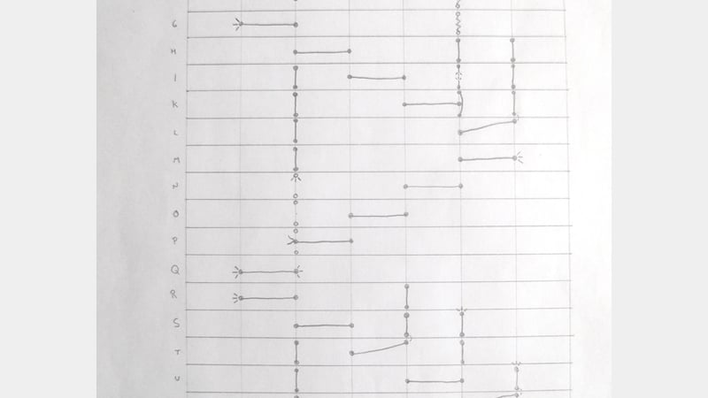As part of my examination of the book, I produced a sewing diagram (left, click to expand), in order to find out how it had originally been sewn, and discovered a number of issues that were likely to blame for the book's self-destruction.
