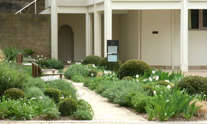 At Clare College Court some really stunning planting is worthy of a Chelsea Flower Show garden in its elegant, crisp simplicity, with beautifully maintained box spheres and imaginative perennials.