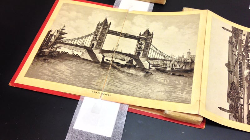Greetings from America! It's been a while since I last contributed to the West Dean Conservation blog, and in the interim I've completed my MA at West Dean, returned home to the States, and found employment as a contract conservator for an e-learning company. Gale, a part of Cengage Learning, my employer, is spearheading a digitization project in cooperation with the Smithsonian Institution to scan and make available digitally a selection of the materials in their collections. (For those unfamiliar with the Smithsonian-the world's largest museum and research complex-you can learn more about it here.) The Smithsonian is providing the materials and workspace, Gale provides the funding, and Innovative Document Imaging (IDI) is the company contracted to complete the scanning process. This project has required an immense amount of cooperation and coordination to get off the ground, and a portion of my time is spent in liaising with everyone involved as questions arise or obstacles are encountered. The project includes the review, treatment, and scanning of all items as required. I was hired specifically to handle review and treatment.