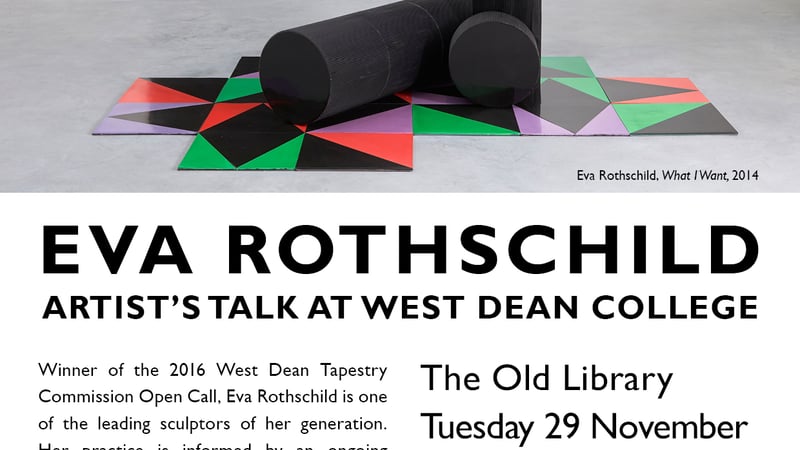 Winner of the 2016 West Dean College Tapestry Commission Open Call, Eva Rothschild is one of the leading sculptors of her generation. Her practice is informed by an ongoing interest in visual perception and the nature of materiality, demonstrating a longstanding engagement with the woven surface. For this talk Eva will discuss her wider practice as well as her ambitions for the commission, which sees her collaborating with the Master Weavers at West Dean Tapestry Studio to produce a unique hand-woven tapestry, due to be completed next year.