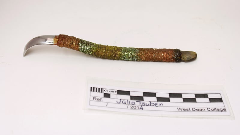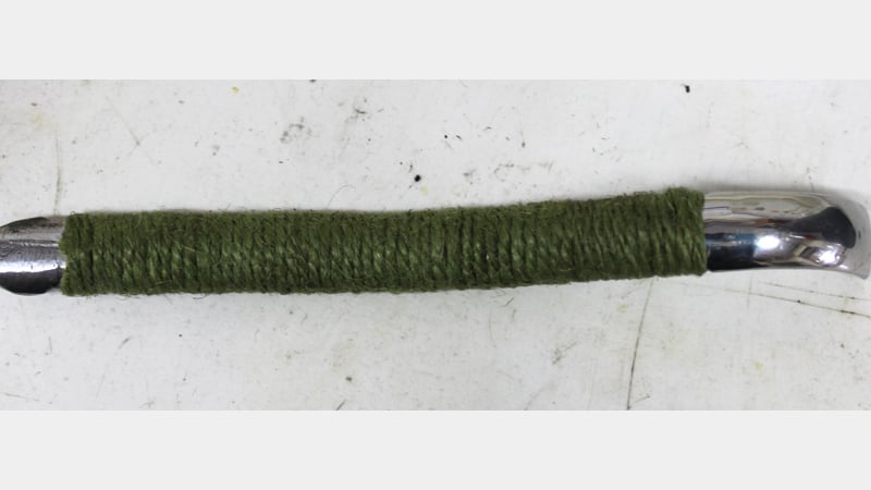 The fun bit really started with making a handle for my scraper. I used green string, shellac, pigments and glitter.