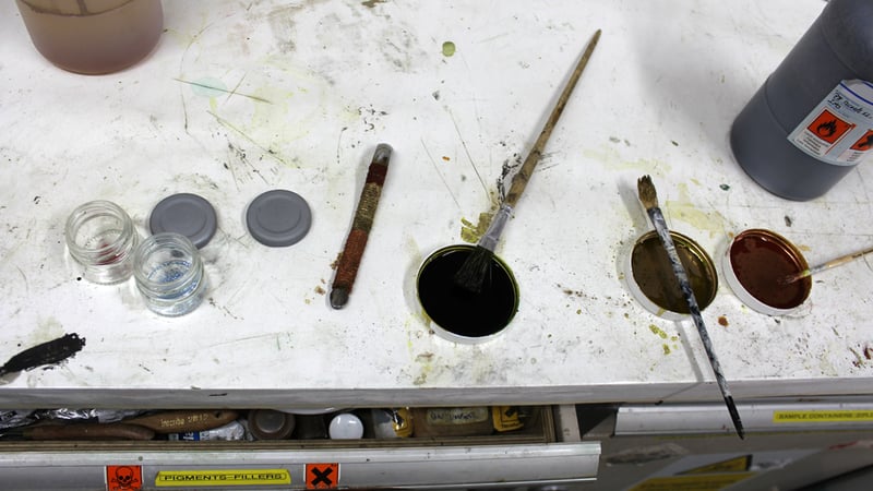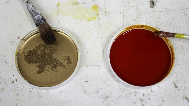 The workshop has a good variety of pigments, both pure and pre-mixed, so I decided to make my own personal colours for my handle.
