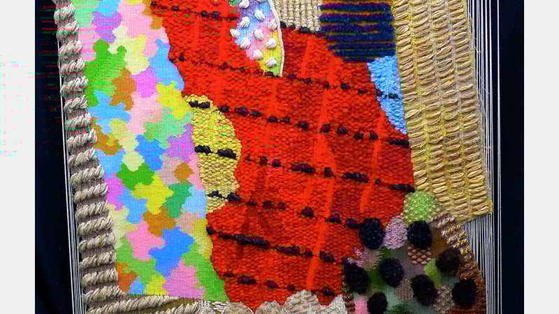 Two years ago, the inaugural Heallreaf exhibition (pronunciation guide: Hea is pronounced 'hare' and reaf as 'reff' - the full word sounding like 'Hare-l-reff') of contemporary woven tapestry took place at West Dean. The exhibition was organised by recently graduated Visual Arts student, Margaret Jones, and held in the Tapestry Workshop, now part of the Edward James Studios and host to the full-time Visual Arts programmes.
