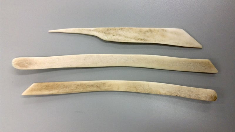 Last winter, a few of us from the books department decided to go for a little hike one weekend and found ourselves walking through some woodland about half an hour from the college. One of the group came across an antler, which she wasn't too keen on keeping, so I thought I'd take it back to college and have a go at making some custom bone folders. Bone folders are a tool frequently used by bookbinders and book conservators to aid in crisp folding, for scoring, burnishing, smoothing and many other purposes. They come in many shapes and sizes and are generally very useful things to have a variety of.