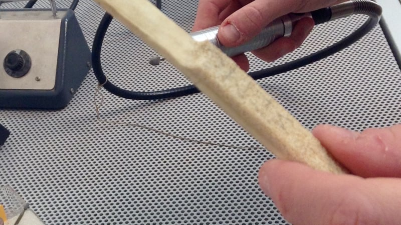 I had a chat with Jon Privett, the head of the metals conservation programme, about the possibility of cutting up the antler using some of the power tools that the bookies just don't seem to have. He was enthusiastic about my project and happy to help, so I dropped by Metals with my antler. Jon quickly buzzed the antler into various sized pieces, much more efficiently than with the hand saw that I was considering using myself.