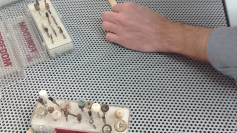 Back in the Books department we tried a few different methods to shape the tools. We found that rasps and files were still the most useful for general shaping. A lot of the smoothing and fine work was done using sandpaper manually. We also had a small drill with various attachments that were useful for speedier smoothing and shaping.