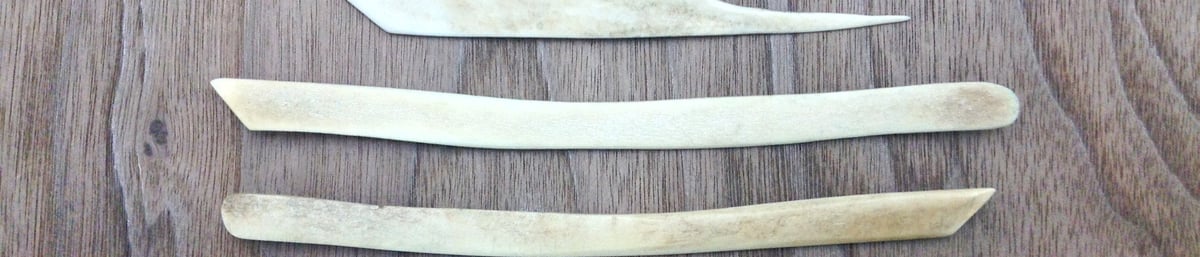 In the end, the bone folders we created are not as large and sturdy as the classic bone folder that every book conservator has in their kit. They are much thinner and more flexible. More likely they will be used for finer work, possibly for making crisp corners inside clamshell boxes, or shaping headcaps on leather bindings. I'm sure we will put them to use somehow and it's always nice to have a tool you've made yourself. It was a fun experience and we've always got our eyes out to see what else we can find to create our own traditional tools or book furnishings.