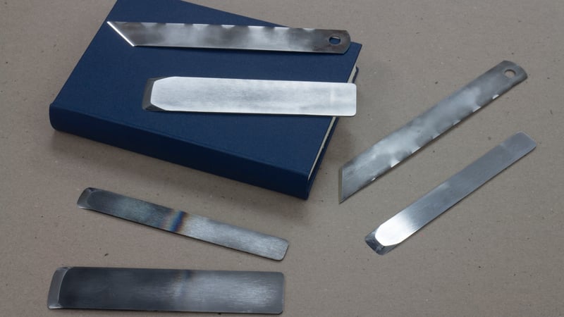 While studying to be a book conservator we mostly work with organic materials. But sometimes we work with metal-mainly if we are making tools. Our first project of the year at West Dean was to make a paring knife. These knives are designed to remove most of the thickness of a piece of leather along the edge. This is useful for making the edge of a piece of leather 'disappear' on the boards of a book when binding it.