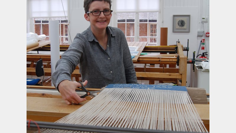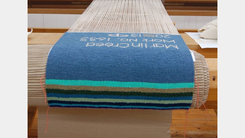Now on show at Hauser & Wirth, New York (8th November - 21st December 2013), a work by renowned Scottish artist Martin Creed has a close connection to West Dean. 'Work No. 1683' was handwoven by Caron Penney at West Dean Tapestry Studio over an eight-week period in 2013. Creed's major solo exhibition encompasses new work as well as examples representing his career over the last three decades.This is not the first time that the West Dean Tapestry Studio has worked with a noted artist in the production of original work. The studio is renowned for its previous collaborations with figures such as Henry Moore, John Piper and Tracey Emin. A great deal of work related to tapestry and textile art practice is currently being produced and explored by contemporary artists, including the use of digital weaving technologies by artists such as Chuck Close and Grayson Perry. Creed's commission is notable for his use of traditional handweaving techniques and the manner in which those processes inform its conception.Caron describes 'Work No. 1683': "The tapestry is rendered in coloured threads sourced from the Studio's archive, specifically from the years 1980 to 2013. A connection to indexical measurement and pre-existing systems runs through the work: at 40cm wide, the tapestry's dimensions correspond to the width of the 'heddles', traditionally the width of the weaver's shoulders. Individual weavers would often work with their own set of heddles, allowing them the freedom to make larger tapestries sitting closely alongside numerous other skilled craftsmen. Each coloured stripe is produced from a length of wool measured against the distance of the weaver's stretch and the height of the work is dictated by the number of individual stock colours."