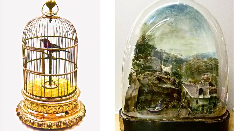 The Scarlet Tanager was a recent donation and had found its way to the workshop during the Treasures of the Forbidden City exhibition. It was used for comparison with one of the pieces from China- an elaborate triple singing bird cage automaton with a near identical mechanism. The bellows had been uncovered in the process of comparison and was still waiting with the mechanism for repair.