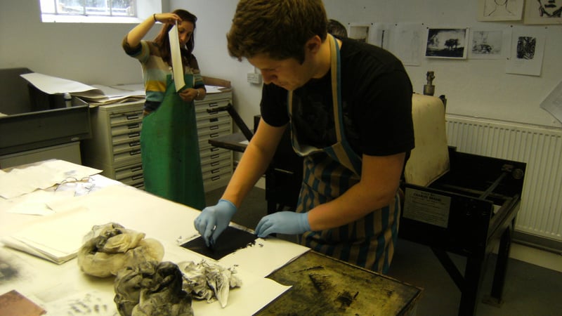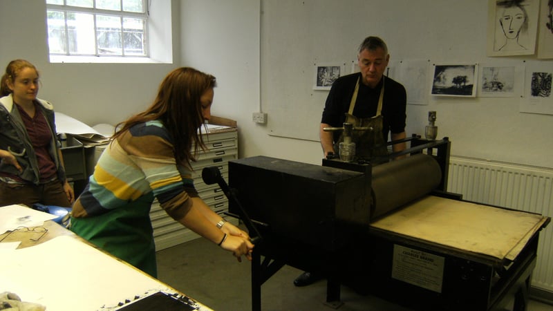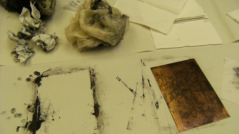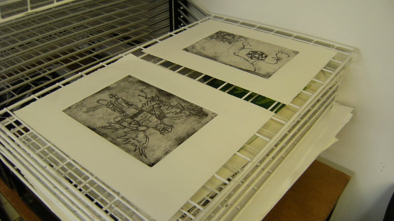 The Books graduate students have been embarking on a collaborative learning experience with the Visual Arts department-printmaking! With the help of printmaker and VA tutor Marcus Rees-Roberts, we've been exploring the world of intaglio prints and having a ball.