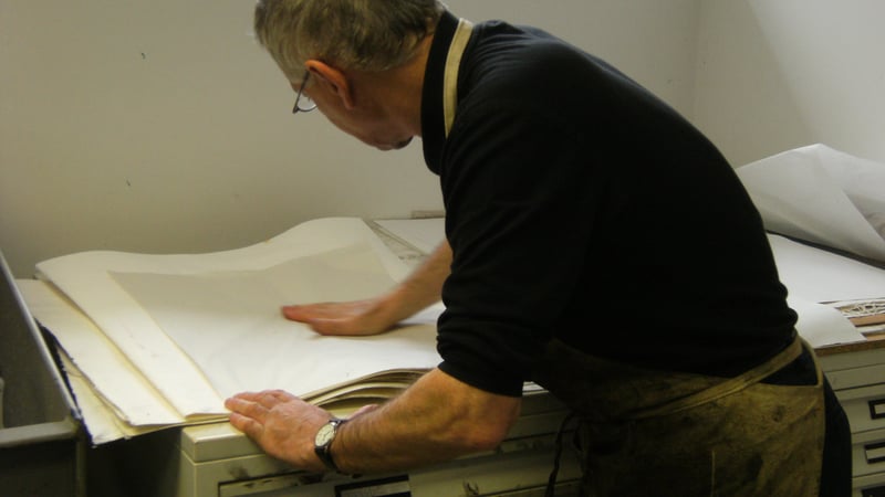 To begin with, we obtained some copper plates with the kind assistance of the Clocks and Metals departments-we cut plates of about A5 size from a large sheet of copper and then filed the edges smooth and slightly rounded the corners so nothing would catch during printing.