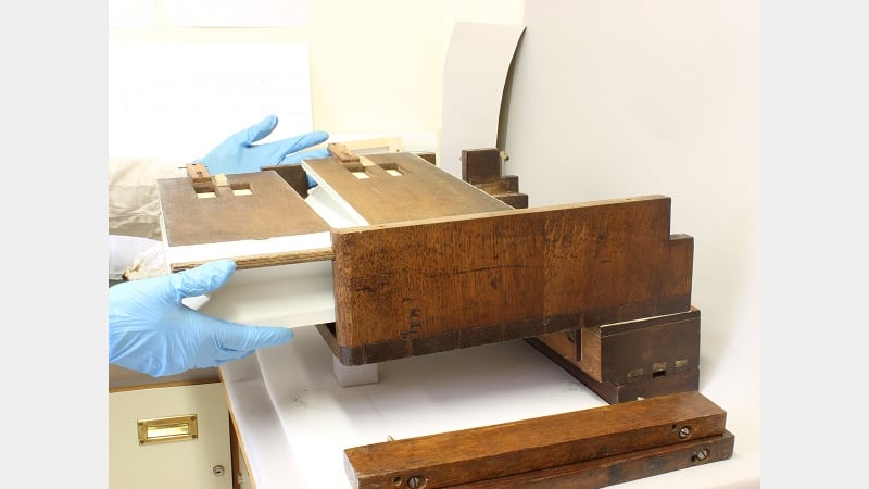The previous post opening the bellows explains how the bellows work, assesses their condition and shows historical evidence found inside them.