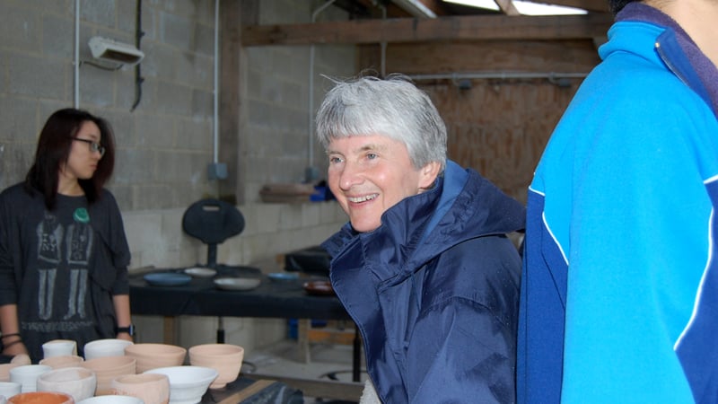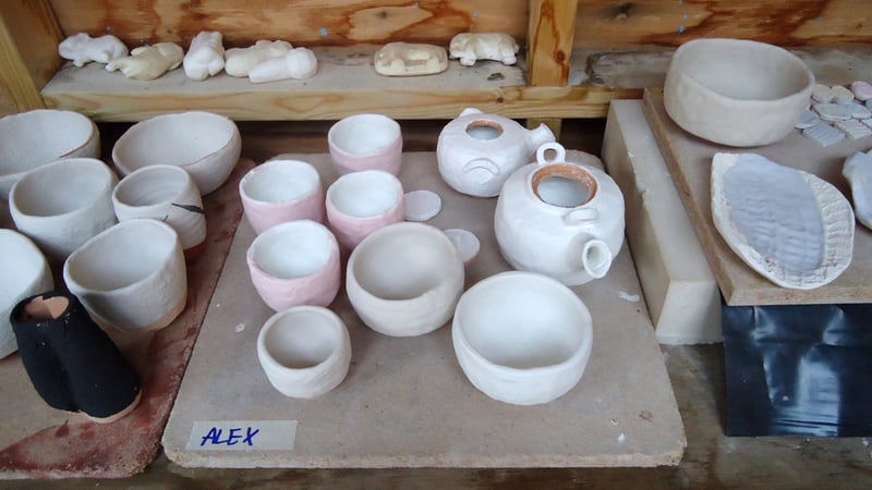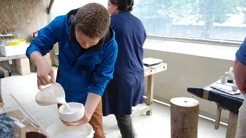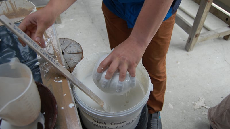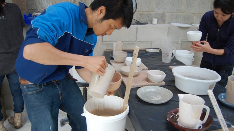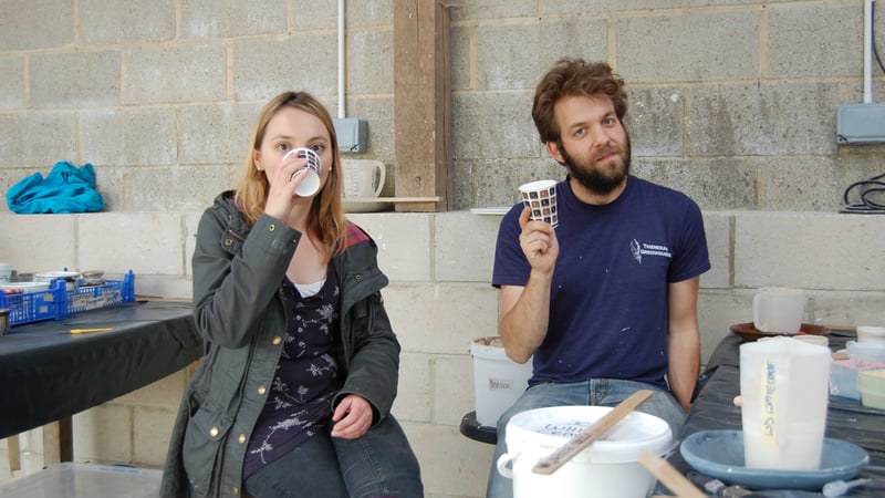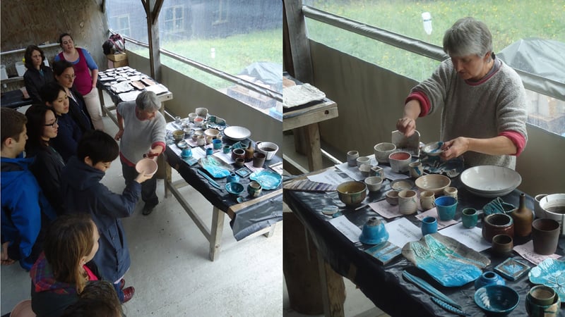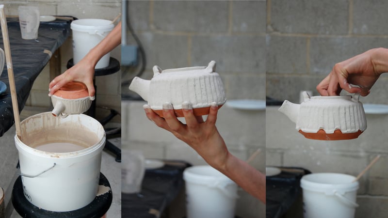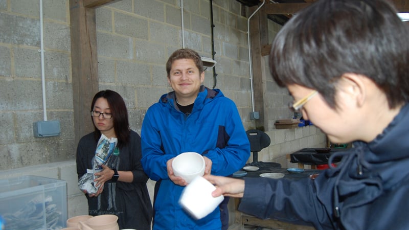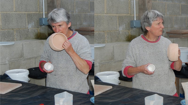 Ali certainly has a taste in pots... But here she is testing the porosity of the pots - the more porous the pot, the water in the glaze will be absorbed more easily and the glaze will be thicker.
