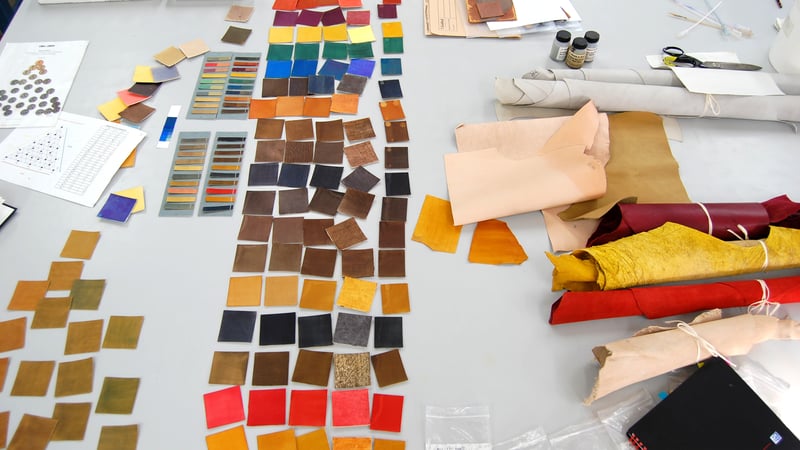 Leather dyeing samples in a lecture from David Dorning