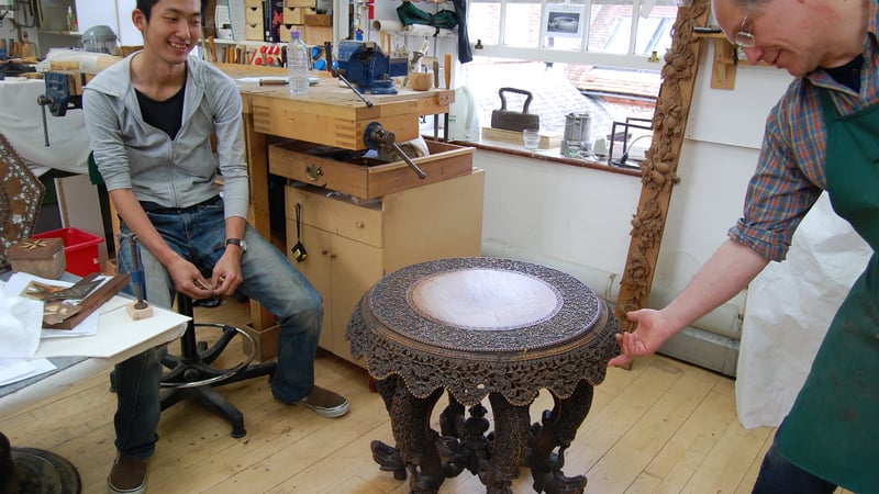 Another table Ryo is working on; furniture tutor Norbert is