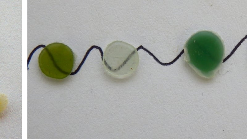 Orasol dyes, a range of colours with good light-fastness, were used to colour the resin. Initially dry powder dyes were added directly to the resin, however used in this way, the dyes only partially dissolved. Dyes were therefore mixed in acetone first. Experimentation demonstrated that it was necessary to make a fairly concentrated dye/acetone mix, so that the smallest amount of acetone could be added to the resin, otherwise shrinkage resulted from the evaporation of the solvent.