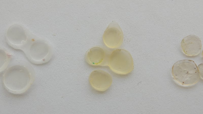 Three different resins were tested: two epoxy resins and one polyester resin. HXTAL NYL-1 epoxy resin was selected. Although it has a very long cure time (approximately 30 hours required for the small scales) and is expensive, the very small quantities needed meant the cost was justifiable. Its main advantages are that it is colourless and non-yellowing (unlike most other epoxy resins), compatible with the dyes available at college, and relatively non-toxic (especially compared to the polyester resin).